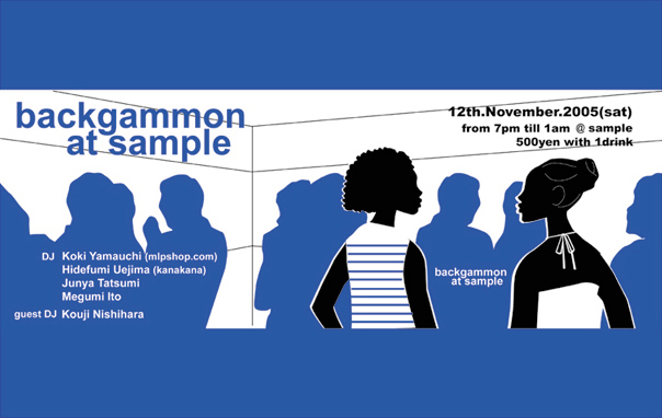 charge 500 yen with 1 drink DJ: ・MLP(山内弘毅) http://mixi.jp/show_friend.pl?id=73348 ・犬が5匹(植嶋秀文) http://mixi.jp/show_friend.pl?id=468197 ・Tatsumi ・biff http://mixi.jp/show_friend.pl?id=195108 guestDJ: ・コーヒールンバ http://mixi.jp/show_friend.pl?id=891951 sample 奈良市馬場町1番地西栄ビル1階 info.090-1240-1439 ----------------------------------------- 8月のbackgammon special☆でも好評だったコーヒールンバさんがguestDJとして再度