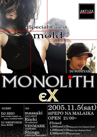 和歌山大学祭の盛夜祭として11月5日に和歌山市狐島のクラブペポナマライカで「MONOLiTH eX」を開催します!ゲストはなんとSBK(スケボーキング)のフロントマン、Steady&Coとして活動して来たSHIGEOが実の弟との新ユニット"mold"として登場!!クラブサウンドに密着した新たな音で和歌山の夜を熱くする事間違いなし!!和歌山大学祭の盛夜祭と言う事で和歌山大学生は1,000円(1ドリンク付き)で入場可能!また、他大学生は1,500円(1ドリンク付き)一般は2,000円(1ドリンク付き)で入場できます。是非この機会にSHIGEOの新しい姿の目撃者になろ