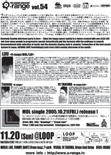 いつもThe sunday afternoon O-rangeにお越し頂き誠にありがとうございます。 今月も第3日曜日が近づいて参りました。 先月アナログリリースも果たしたLUUが、更なる自身の音楽性を出すべくロングプレイを試みます。今月のLUUは自分のBirth Dayが近い(11/16生まれ)こともあり気合い入りまくりです!! ぜひぜひお祝い含めてLUUの世界を体感しに来て下さい。 ちなみにLUUのプレイは16:15-18:30(135min.)です! 先月Birth Dayを終えたTOMMYは今月トリを務めます。いつもはLUUとのBack to Backでガンガン盛り上げるだけに、今月のTOM