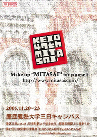 大学の学祭等を充分楽しめて無い皆さんや、義塾に興味を持つ皆さん、そんな皆さんを下っ端教官がガイダンス。 あく迄も「全くの個人レベル」ではありますが、三田祭開催にあわせて三田祭見学『仮)下っ端教官と一緒に学祭(「三田祭」)を楽しんじゃいましょう!!』を企画しましたので良かったら参考迄に覗いてみて下さい。 「下っ端教官と三田祭を楽しもう♪」コミュ http://mixi.jp/view_community.pl?id=413859 下っ端教官と三田祭を楽しもう♪ 慶應義塾大学應援指導部 Angetreten! ☆慶應義塾☆管理人:みのるん@
