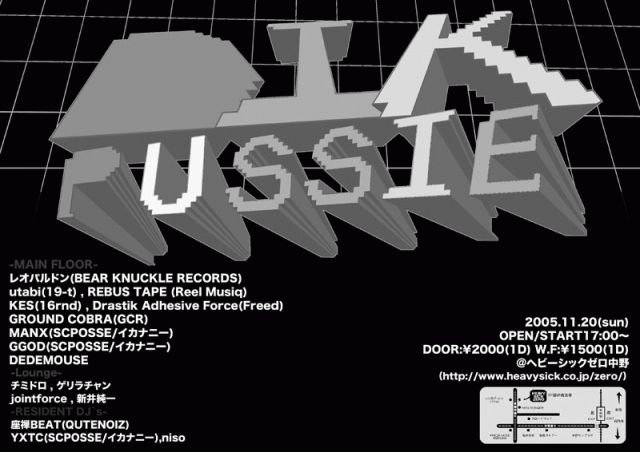 チ○ポとマ○ポの出会い系炸裂新腐れゲロウ酒池肉林イベント!!喜久盛酒造オリジナル限定発売日本酒売れの○りでサービス!! 「DIK PUSSIE] 05.11.20(sun)17:00open 2000/1D wf1500/1D DJ&LIVE レオパルドン(bearnucklerecords) utabi(19-t) REBUSTAPE(ReelMusiq) KES(16連打) DrastikAdhesiveFourth(FREED) MANX(SCOPOSEE/イカナニー) DEDEMOUSE GROUNDCOBRA LOUNGE チミドロ ゲリラチャン jointforce 新井純一 andmore… RESITENDDJ/ 座禅BEAT(QUTENOIZ) YXTC(SCPOSSE/イカナニー) niso htt