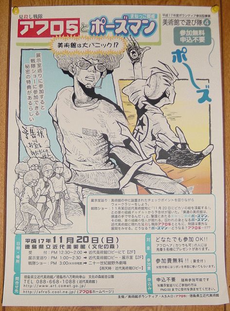 2大ヒーロー、夢の共演!! 美術館内でのウォークラリーや見殺し戦隊アフロ5とまねっこ戦隊ポーズマンによる戦隊ショーが楽しめます。 詳細は、近代美術館ボランティアHPにて http://www.art.comet.go.jp/bora/asobitai05.htm
