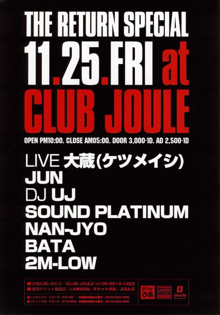 ENTRANCE:3000YEN(1drink), 2500YEN (1drink) w/flyer