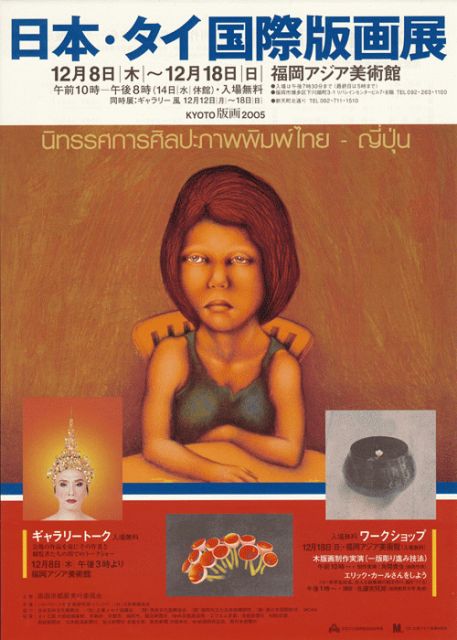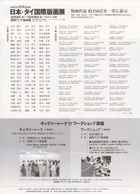 明日から版画展が始まります。 「日本・タイ国際版画展」(福岡市芸術文化振興助成事業) ◎会期:12月8日(木)〜18日(日) OPEN: 10:00〜20:00 / 14日は休館 ◎会場:福岡アジア美術館 7F企画展示室全館 http://faam.city.fukuoka.jp/home.html ◎主催:版画京都展九州版画会 ◎共催:シルパコーン大学(バンコク)、日本版画協会 ◎後援:福岡県、福岡市及び福岡市教育委員会、西日本新聞社、NHK福岡放送局 ◎オープニングセレモニー 12月8日 18時より 会場及び「アジ・カフェ」