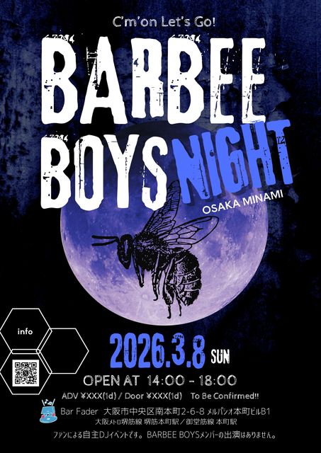 ¥È¥ÔΩ¤Æ¼ºÎ餤¤¿¤·¤Þ¤¹¡£ BARBEE BOYS³Ú¶Ê¤ä±ÇÁü¤òή¤·¤Æ¡¢¤ß¤ó¤Ê¤Ç¤Ï¤·¤ã¤¤¤À¤ê²Î¤Ã¤¿¤êÆÝ¤ó¤À¤êÃý¤Ã¤¿¤ê¤¹¤ëDJ¥¤¥Ù¥ó¥È¤Î¤ªÃΤ餻¤Ç¤¹¡£ ¥Õ¥¡¥ó¤Ë¤è¤ë¼«¼çDJ¥¤¥Ù¥ó¥È¤Ç¤¹¡£ BARBEE BOYS¥á¥ó¥Ð¡¼¤Î½Ð±é¤Ï¤¢¤ê¤Þ¤»¤ó ͽÌó¡¡2.000±ß+1d¡Ê600±ß¡Ë ÅöÆü 2.500±ß+1d¡Ê600±ß¡Ë »²²Ã¤ò¤´´õ˾¤ÎÊý¤Ï¤³¤Á¤é¤Î¥È¥Ô¥Ã¥¯¤Ø »²²ÃɽÌÀ¤ò¤ª´ê¤¤¤·¤Þ¤¹¡£ ÅöÆü²ñ¾ì¼õÉդˤƤªÌ¾Á°¤ò³Îǧ¤·¤Þ¤¹¡£ ¤â¤Á¤í¤óÅöÆüÈô¤Ó¹þ¤ßÍè¾ì¤âÂç´¿·Þ µ¤·Ú¤ËÍ·¤Ó¤Ë¤ª±Û¤·¤¯¤À¤µ¤¤¤Þ¤»¥ß¥Ä¥Ð¥Á ¢¨Åìµþ³«ºÅ¤Ï2026ǯ2·î22Æü¡ÊÆü¡Ë¡ª¡ª ²ñ¾ì: Bar fader Âçºå»ÔÃæ