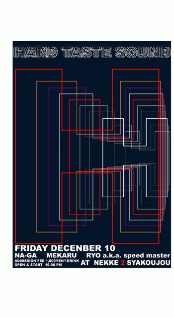 告知失礼します! 12月16日金曜日にHARDで好評なパーティー「H」があります!! 熱く激しく踊り狂いたみなさま!是非遊びにきてください! TECHNO〜HARD DANCE〜PSYCHE OPEN,START 22:00〜 \1000(2D) DJ NA-GA MEKARU RYO a.k.a speed master