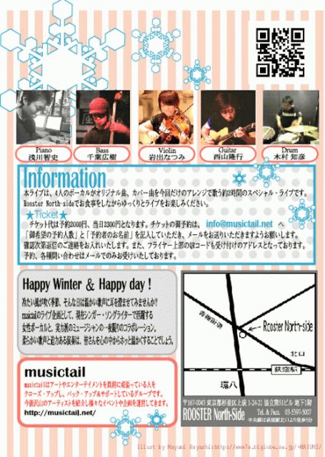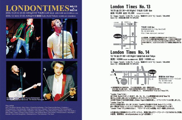 2005年も終わりに近づいてきたと言うことで、今回はクリスマス&忘年会スペシャルとしてバンドを1バンド増やして合計3バンド、そしてゲストDJ陣も豪華ラインナップで行います。