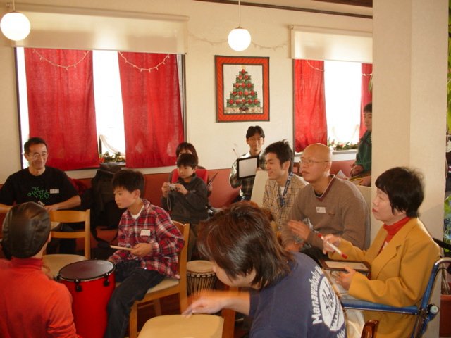 はじめまして! フッキーと申します。 千葉DCでファシリテータやってる埼玉県人です。 茨城・牛久で楽しいクリスマスイベントやります。 ちょっと宣伝させてくさいませ〜♪ 「12/18(日)X’mas Jam at Hamona cafe」 ジャンベ、ドゥンドゥン、コンガ、ボンゴ、シェーカー、etc・・ 参加者がみんなで輪になり即興で楽しむ世界のパーカッションでのJamセッション=ドラムサークル そして、おいしいバイキングを楽しみながらのバンドジャムセッションです。 おいしく、楽しく、好きに叩きまくって踊り