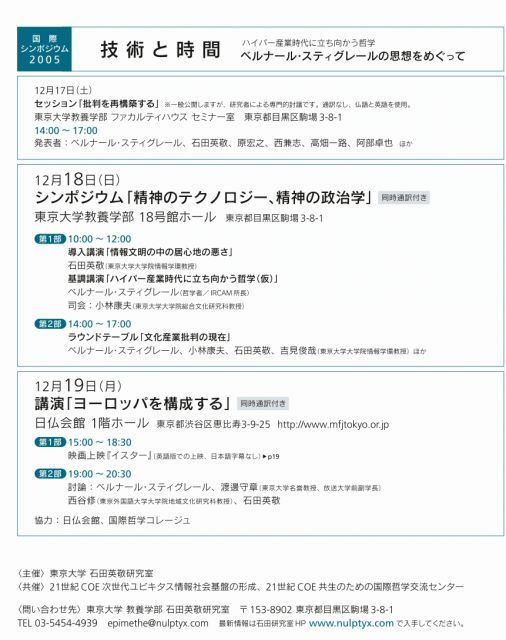 来る12月19日、恵比寿の日仏会館にて15時から『イスター』という映画の上映があります。 上映後の19時からは哲学者のスティグレール、渡邊守章、石田英敬、そして西谷修氏らによる討論もあります。お題は「ヨーロッパを構成する」です。 きゅんきゅんの思想家の話を聴けるいい機会です。時間に余裕がある方は是非ご参加下さい。