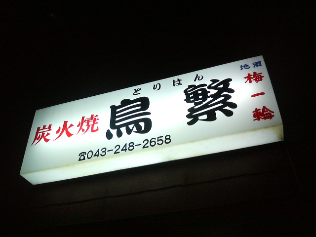 韓国スター君が22歳になったのをお祝いする! の名目で、稲毛駅南口にある炭火・串焼き屋『鳥繁』で飲みまっしょう。(^^ゞ 開催日時: 12/28(水) 20:00〜22:30(閉店) お店 : 鳥繁 043-248-2658 地図 : http://www.0298.co.jp/torihan/tenpo.htm ねらいめ: 比内地鶏、和牛のレバ刺し(入荷限定)、霜降馬刺し、牛タン刺し、 馬の鬣(たてがみ)、牛モツ煮込み、串焼き各種 参考サイト: 鳥繁について http://www.0298.co.jp/torihan/ http://www.torihan.com/menu/index.shtml まづゎ、4人で予約してありまつ。 参