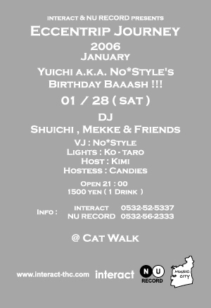 The 'first stage' of my dj career in japan its ending....Many parties,friends,vibes......I wanna thaks all of you party people who supportes me,finishung this 'stage' in a big celebration party,alpha.....and only on this one we borning to u a exclusive big field brothers dj set(soulza & drumbira) th