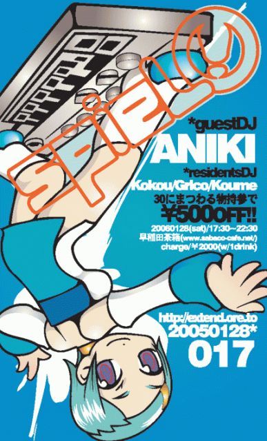 お待たせしましたー!!!あの千鳥足系アルコールパーティーが、1年ぶりの復活!!テクノ,ハウス,エレクトロ,ブレイクスと、打ち込み系を中心に、最高のダンスミュージックをお届けします!!