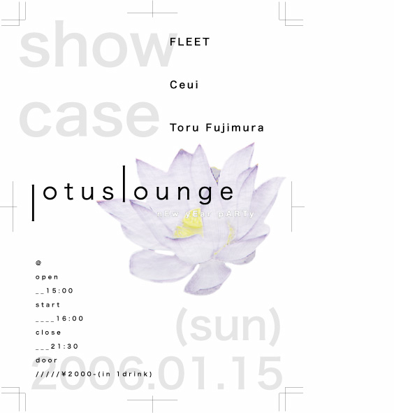 あけましておめでとうございます!! iDJコミュ管理人、純之介教授です。 大音量のクラブイベントに飽きた方。疲れた方。 仕事があるから夜のクラブイベントに行けない方。 DJの流す音楽を聴いてるだけじゃつまんないっ! 音楽好きが純粋に楽しめるカフェイベント「lotus lounge」 出演していただくアーティスト達は最先端の感性を持つさまざまなジャンルの人たちをセレクト!!ShowCase以外の時間のBGMはみなさまにiPodをもちよってもらい順番に好きな曲を流していただく方式をとらせていただきます!! 誰よりも音楽が大好きな人に