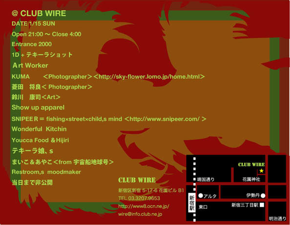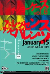 日時:2006年1月15日(日)18:30(開場)19:00(開演) 〜22:30(終演予定) 会場:渋谷/UPLINK FACTORY 料金: 2,700円(前売) 3,200円(当日)ともに1D付 (前売はUPLINKにて購入可能です) LIVE: キセル SL@yRe&TheFeminineStoolξ チミドロ mondo coffee and more?? 告知失礼致します。僕の所属する「tokyo fun party」というレーベルの不定期イベント「ショーケース」、第8回を開催することになりました。今回はキセルのお二人にゲストで出演していただくことになりました!新鋭エレクトロニカデュオ「SL@yRe & The Femini