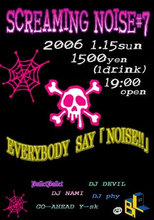 魁!ラウドロック塾!! LOUDROCK EVENT ScreamingNoiseVol7 前回は大雪の中すばらしい盛り上がりでした。 さて、今回は? ■Act [Live act] BulletBallet 限界を超えた盛り上がりを約束します! [DJ]NAMI / phy / DeViL 様々な場所で活躍中のラウドロックDJを集めました。 [Live drawing] GO→AHEAD Y→sk 以前飛び入りでペイントした時、なんとケチャップやソースを使って絵を描いたあの男が正式に参戦です。 【会場】 clubBL http://clubbl.com/ 【開催日】 2005/12/18(sun) 【開場&開演】 19:00 【チケ