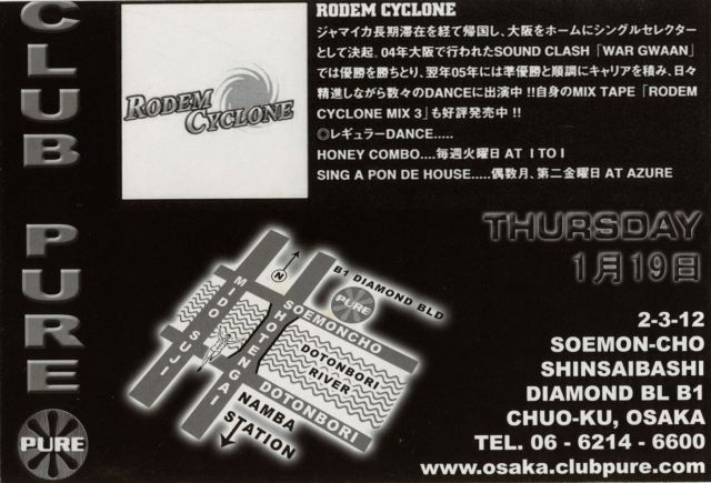 £±¡¿£±£¹¡¡£È£Ï£Ô¡¡£Ó£Á£Õ£Ã£Å¡¡¡÷club PURE ¡¡¡ùSOUND¡¡ ¡¡¡¡¡¡SOUND PLATINUM ¡¡¡¡¡¡GIANT SWING ¡¡¡¡¡¡UJ ¡¡¡¡¡¡PRECIOUS STONE ¡¡¡ùGuest sound ¡¡¡¡¡¡RODEM CYCLONE Club PURE¡¡OSAKA 2-3-12 SOUEMON-CHO SHINSAIBASHI DIAMOND BL B1 CHUO-KU,OSAKA TEL¢ª£°£¶¡Ý£¶£²£±£´¡Ý£¶£¶£°£° ¡¡¡¡¡¡¡¡¡¡http://www.osaka.clubpure.com PURE¥³¥ß¥å¥Ë¥Æ¥£¡¼ ¢ªhttp://mixi.jp/view_community.pl?id=76353 SOUND PLATINUM¥³¥ß¥å¥Ë¥Æ¥£¡¼ ¢ªhttp://mixi.jp/view_community.pl?id=280339