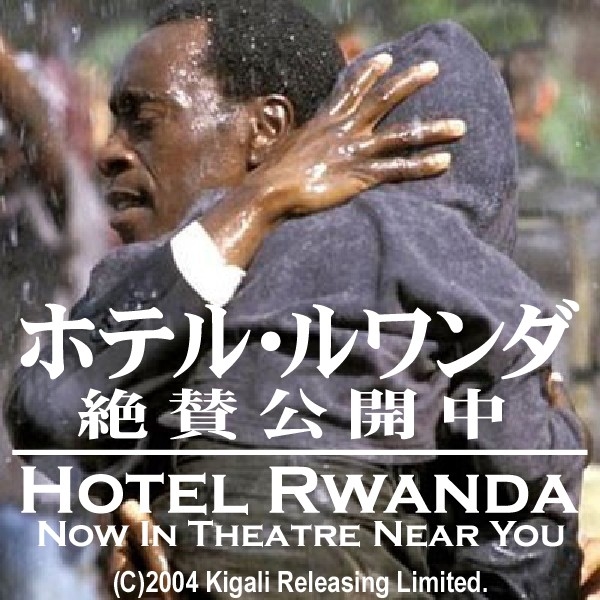 いよいよ1月14日シアターN渋谷で公開が始まりました! 今後各地の映画館で続々と公開されていきます。 そこで、自分のミクシィページのトップ画像を公開中「ホテル ルワンダ」バージョンにしてキャンペーンを張ってみようと思います。 以前コミュトップに使われた画像をベースに意味が分かるよう文字をつけ加えてあります(Yasuさん加工)・・・今は、コミュトップの画像もこちらに変わりました@@ トップ画像イベント、公開までと考えていましたが、公開中バージョンもできましたので、公開中も参加可能とします。公開までの参加と考