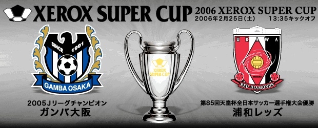 ■ゼロックススーパーカップ http://www.j-league.or.jp/xscup/ (もう今年の情報です) http://www.fujixerox.co.jp/event/xsc/ http://www.fujixerox.co.jp/event/xsc/ticket.html (まだ去年の情報です) http://www.j-league.or.jp/release/000/00001024.html ■出場チーム 浦和レッドダイヤモンズ http://www.urawa-reds.co.jp/ 第85回天皇杯優勝 ガンバ大阪 http://www.gamba-osaka.net/ 2005リーグ優勝 ■スタジアム情報 国立霞ヶ丘競技場 http://www.naash.go.jp/kokuritu/ ■チケット情報 http://www.j-league.or.j