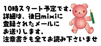 交流会の様子など:http://54kai.com/ ←見てね! PVやPHOTOもあるよ! ※主催者KENクン【http://mixi.jp/show_friend.pl?id=1068839】が多忙のため、代理で立てました※ ◆◆◆◆◆◆◆◆◆◆◆◆◆◆◆◆◆◆◆◆◆◆◆◆◆◆◆◆◆ ◆◆締め切りました◆◆締め切りました◆◆締め切りました◆◆ ◆◆◆◆◆◆◆◆◆◆◆◆◆◆◆◆◆◆◆◆◆◆◆◆◆◆◆◆◆ 予定が未定で・・・・参加したいけど、締め切りに間に合わないかもっ!!!いったいどーしたら?!?! って方はコメントだけでも残して下さいませ☆ お待たせし