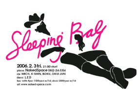 1980年代にN.Y.で生まれたレコードレーベル"Sleeping Bag Records"からインスピレーションを受けスタートしたパーティー、その名も「Sleeping Bag」 独特で冗談とも思える音作りや、ヌケのあるテイストで知られるレーベルカラーもそのままに、「音」で遊んでも良し、「空間」を楽しむのもよし、の好奇心をそそる遊び場をお届けします。 今回の空間DECOはL.E.D ! [ SLEEPING BAG ] DATE: 2006.2.3 FRI. 21:00 START VENUE: NAKEDSPACE( http://www.naked-space.com ) DJS: MICH, K-SHIN, BOKU, OKUI JUN DECO: L.E.D FEE: WITHFLYER_