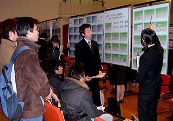 2005年度 秋学期 卒業研究発表会 場所 :東海大学湘南校舎松前記念館地下講堂 時間 :10時30分〜15時30分 内容 ・ポスターを用いて卒業研究内容を発表。 ・当日は、約70件のポスター発表を予定。 ・会場内の出入りや学生に対する質問は自由。 ホームページから引用しました。 ・・・ただ、13日の予定が記載されていません(-_-;) 分かる方がいらっしゃいましたら、ぜひ教えて下さい♪ ちなみに皆、13日は行きますか??