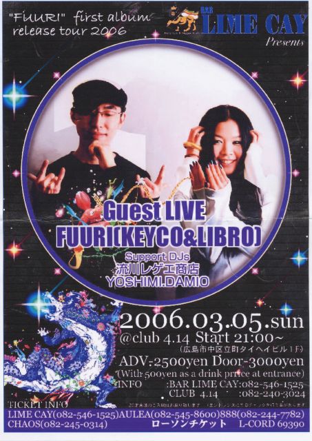 (別にドリンク代¥500頂きます。入口にて、チケットと、もしくはチケット代と一緒にお払い下さい。)