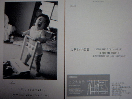 3月1日から10日までの10日間、 写真数葉を展示していただけることになりました。 DMを既にご覧の方はお気付きかと思いますが、 500部を限り印行 → 手書きによるナンバリングを施しています。 このDMで使用した写真は店内で展示いたしませんので、 御来店記念としてお持ちいただければ幸いです。 また、店内には記帳用の筆記具を用意いたしますが、 出来ましたら御愛用の万年筆、ボールペン、筆ペン、等々をご持参下さいますようお願いいたします。