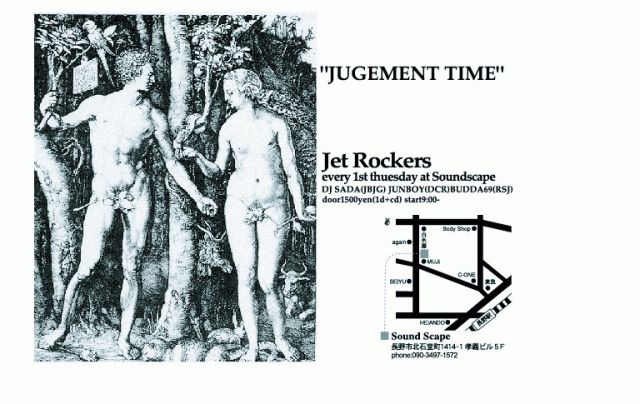 平日火曜日から怒濤の集客を誇るジェットロッカーズ 今回もどんなフライトになるか… お楽しみに 先着20名様にスペシャルなCDプレゼント 11時ぐらいまでラウンジ的な感じで飲んでますので ゆっくり飲みたい方はお早めの御搭乗をお願いします 新旧オールジャンルでフロアをロックする ジェットロッカーズ!!!発進 2006.03.07(火) @nagano soundscape 1500yen(1d+cd limited 20) start9:00- DJ sada(JBJG) JUNBOY(DCR) BUDDA69(RSJ) jazz,ratin,soul,hiphop,r&b,house,dmn'b,regge ska,calypso,rock,and more