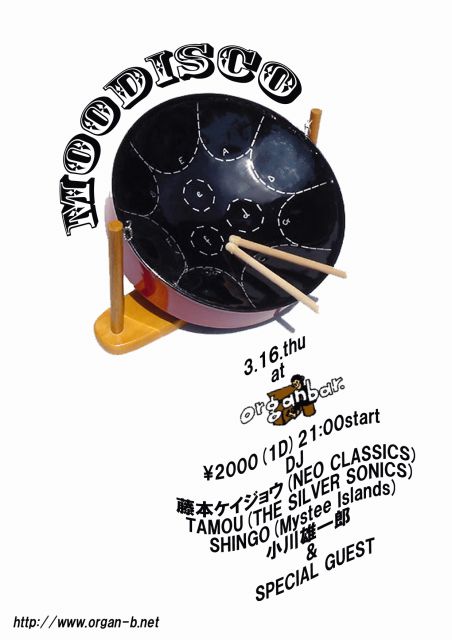 ≪MOODISCO≫ 3/16(THU) OrganBar(http://www.organ-b.net/) \2000(1D)21:00〜ALL 【DJ】 藤本ケイジョウ TAMOU(The Silver Sonics) SHINGO(Mystee Islands) 小川雄一郎 & GUEST mystee islandsのライブではありません! が!ミスティーから2人DJが参加しまーす。 みなさまオルガンバーに足を運んでみてください♪