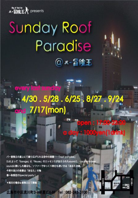 ADV:2500yen (with 1drink) DAY:3000yen (with 1drink)