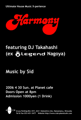 次回の"Harmony"は、"Legend"のレジデントとして数々の夜を盛り上げ、