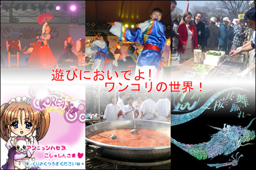 管理人にイベント作成していいかメールで 聞いたんだけど、忙しいらしく、許可をもらって いませんが、もうすぐ開催なので、勝手に イベント告知のせちまいます!!! ごめんよナツミ・・・--;; で、なんか今コミュでちょろっと 「オフ会で花見いかない?」って感じの雰囲気が 漂ってるので、すけとむーちょからアドバイスを 参考にして、提案をします! 「(俺がスタッフやってる)ワンコリアフェスティバルに コミュのみんなで来てはどうですか?」 桜も見れます。韓国料理もくえます。生ビールとか カクテルも飲めます。Aボーイ