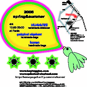 ◆会期:2006年4月4日(火)〜4月16日(日) ◆12:00〜19:00 ◆会場:DAZZLE 〒107-0061 港区北青山2-12-20/T&F 03-3746-4670 http://gallery-dazzle.com ◆主催:(株)メタモ/http://www.metamo.co.jp 照れちゃうようなありがとうもね。 甘ずっぱいありがとうもね。 ほんのりさみしいありがとうもね。 ひとりひとりの「楽しさ」で 包んでみようと思いました。 いろいろあるから、いろいろ届く。 ちょっと楽しい「ありがとう」、あなたも見つけに来ませんか? 主催のデザインプロダクションのmetamoと申します。