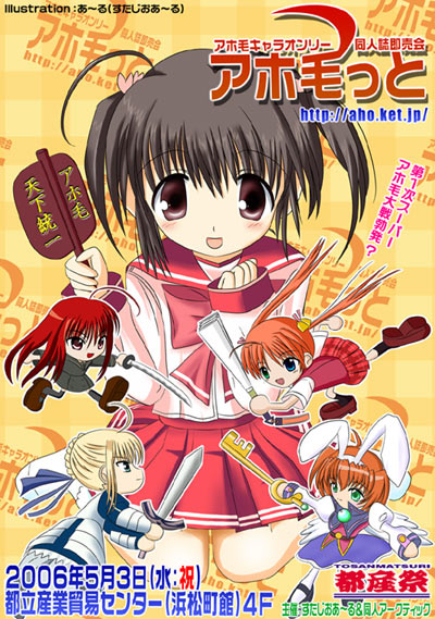 アホ毛っと準備会主催のあ〜るです。 お世話になります。^^ さて、宣伝で申し訳ないのですが、5月3日に都立産業貿易センター浜松町館にて開催されるアホ毛キャラオンリー同人誌即売会「アホ毛っと」のサークル参加申込の締切が迫っております。明後日の4月5日ですので、参加される方は忘れずお申込頂ければと思います。 オンライン申込は4月5日23時59分までとなっております。是非ご利用下さい。 http://tosanmatsuri.sokubaikai.com/tosan-ol.html 以上ご検討頂ければ幸いです。ご参加お待ちしております。 会場でお会いできる事を楽