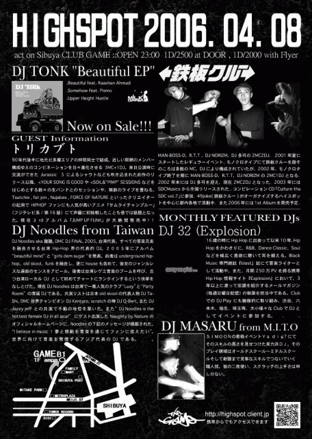 DJS: NUMANOID (MAD SKIPPERS/JOUJOUKA), Hitoshi Ohishi (Newdeal)