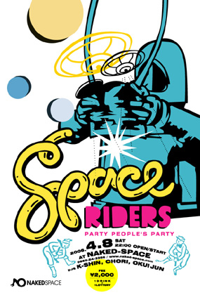[SPACE RIDERS] DATE: 2006. 4.8 SAT 22:00 OPEN/START VENUE: NAKED-SPACE ( http://www.naked-space.com ) DJ: K-SHIN, CHORI, OKUIJUN FEE: 2000YENw/1d+1クジ いい音楽といい景品が当たるいいPARTY♪ 月イチへ、よりパーティーへシフト! 今や全国区、そして唯一無比、そんな松江のオリジネイターとして活動するOKUI JUN+CHORIが中心となって定期開催するパーティー「SPACE RIDERS」。 今回は若手注目株DJ:K-SHINを迎え、よりPARTY対応型にシフトして展開していきます! Delightから流れ着く音楽・DJは決してアンダーグラウ