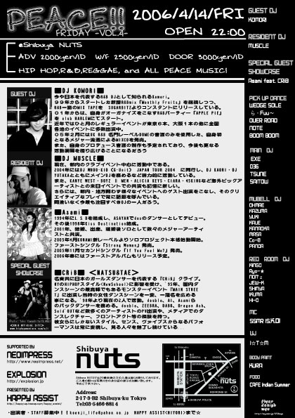 open23:00 door:3,000yen-1drink w/f:2,500yen-1drink