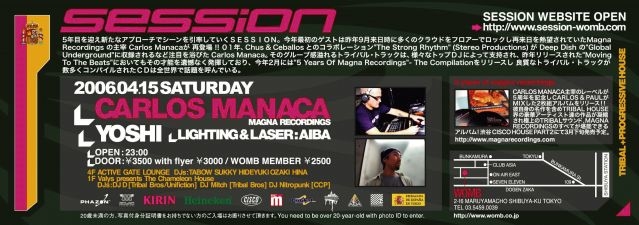 昨年9月Wombにて開催されたSessionにて来日し、その硬派なトライバリズムを披露し、ダンスフロアを熱狂させたCarlos Manacaが再来日!