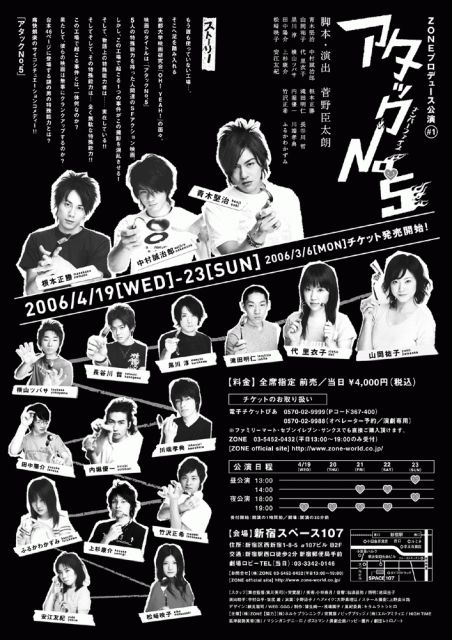 £Ú£Ï£Î£Å¥×¥í¥Ç¥å¡¼¥¹¸ø±é¡ô£± ¡Ø ¥¢¥¿¥Ã¥¯£Î£ï.£µ ¡Ù 2006.4.19 (wed) -23 (sun)¡÷¿·½É¥¹¥Ú¡¼¥¹£±£°£· ¡Úºî¡¦±é½Ð¡Û¿ûÌî¿ÃÂÀϯ ·Ýǽ¥×¥í¥À¥¯¥·¥ç¥ó£Ú£Ï£Î£Å¤ÎÂ裱²ó¥×¥í¥Ç¥å¡¼¥¹¸ø±é¡ª ºî¡¦±é½Ð¤Ï¥¨¥ó¥²¥Ž¥¥æ¥Ë¥Ã¥È¥ð¥¿¡¦¥Þ¥¥Ë¥«¥ê¥¹ ¼çºË ¿ûÌî¿ÃÂÀϯ¡£ 2006ǯÅìµþ¡£ ¹¬¤«ÉÔ¹¬¤«ÆÃ¼ìǽÎϤò¤â¤Ä5¿Í¤Î¼ã¼Ô㤬´¬¤µ¯¤³¤¹Ä˲÷¸ä³Ú¤Î¥µ¥¤¥³¥µ¥¹¥Ú¥ó¥¹¥³¥á¥Ç¥£¡¼!¡ª ¤â¤¦Ã¯¤â»È¤Ã¤Æ¤¤¤Ê¤¤¹©¾ì¡¦¡¦¡¦¡£ ¤½¤³¤Ø¿ô̾¤ÎÂç³ØÀ¸¤¬Â¤òƧ¤ßÆþ¤ì¤ë¡£ Èà¤é¤Ï¡¢ÅìÅÔÂç³Ø±Ç²è¸¦µæ²ñ¡Ö£Ï£È¡ª£Ù£Å£Á£È¡ª¡×¤ÎÌÌ¡¹¡£ ̵µö²Ä¤Ç¤³¤Î¹©¾ì¤ËÆþ¤ê¹þ¤ß¡¢