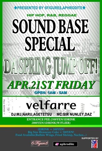 6 Figure$, Aphrodite & C2Cがお届けする、大好評SOUND BASE SPECIAL "DA SPRING JUMP OFF"です。