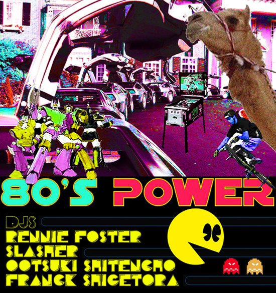 80年代洋楽イベント 「80年代だよ!全員集合!80'S POWER」 4月22日(土曜日) 20:00〜midnight(終電近くに終わる予定) 1000円/1DRINK 80年代、世界の景気は急上昇! 音楽だってド派手に大進歩! 美しく元気で切ないメロディ!鳴り響くシンセタム! ビビッドカラーでファンキーにドレスアップした スーパースター達の音楽で気分はウキウキWAKE ME UP! アシパン初の80年代洋楽DJイベントがついに開催! Let's the music play! 自慢のコルベットをぶっとばして、一夜限りのラビリンスへGO WEST! 大岡山をデロリアンの路駐で埋め尽く