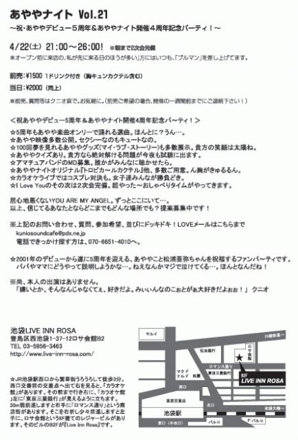 4 22 SAT OPEN:23:00 DOOR \3000/1D WF \2500/1D
