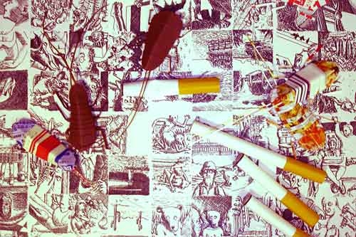 東京における過度の都会性と地図をコンセプトに、マクリーンとフィッシャーは紙のみを使用したインスタレーションを制作しています。マクリーンは、ギャラリーの内装を覆い尽くすかのごとく100枚を超える細密画を展示。彼はこのように述べています。これらの絵は「心のなかの経路についてランダムなイメージを映し出しながら、思考の物理的な距離とその行き先について