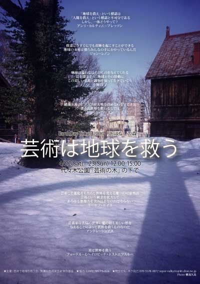 『芸術は地球を救う』 アースデイ東京2006「おはなしの森」トーク&パフォーマンス・イベント 日時:4/22 (土)-23 (日) 12:00-15:00 会場:代々木公園 「バラの園」アーチ脇の「おはなしの森」 参加費無料 (雨天決行 敷物・雨具は皆様でご用意ください) 10万人のイベント 「アースデイ東京」 初の芸術プログラム。芸術家が「地球を救う」をテーマに「見せてお話」やパフォーマンスを行います。どうぞご観覧下さい! ■PART1 見せてお話し トークイン 4/22 (土) 12:00-15:00 ◎「地球を救う芸術家」深瀬 鋭一郎(絵:和志武 礼子)