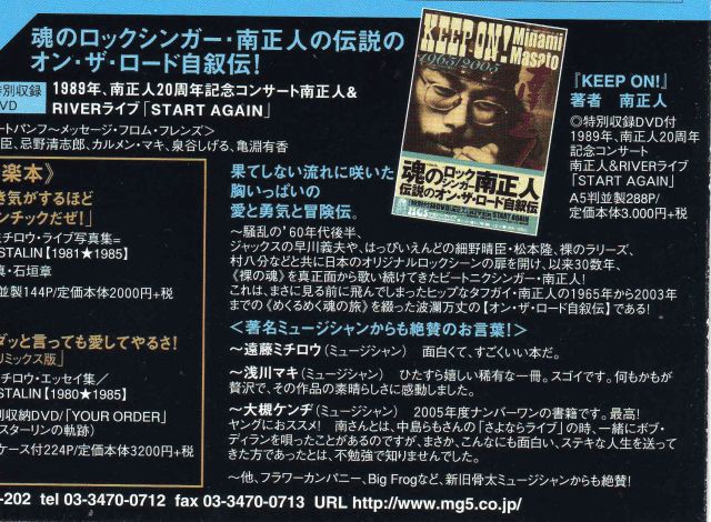 今年もやります 酔いどれ東京ダンスミュジック第3弾決定! 真黒毛ぼっくすは総力戦で、あがた森魚さんに挑みます あがたさんと一緒にお月見しませんか? ------- 4/23(日) 青山 月見ル君想フ 青空レコード企画 「酔いどれ東京ダンスミュジック 3」 開場17:00/開演17:30 前売\2200+D/当日\2700+D 出演 あがた森魚 真黒毛ぼっくす ------ 下記URLから予約できます http://www.ne.jp/asahi/aozora/record/ mixiメッセージでも予約可です 第1回の酔いどれ東京レポート http://smashingmag.com/tour/05tr