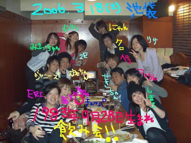 (´ノ・ω・`)ノ・‥…━━━★゚+.・‥…━━━★゚+. みなさんこんにちわ〜♡ 「19830928生まれ」の管理人の「麻ピー」です この間、(3月18日)に第2回目の イベントを行いました〜☆♬ヽ(´∀`*)ノワーィ 14名の参加でしたぁぁー♬♫ 好評につき、第3回目のイベントを したいな〜って思ってます!!! 前回、参加できなかった方もいると思います。 だから参加できなかった分 今回、参加しちゃってください(✿ฺ´∀`✿ฺ)ノ 第3期生募集で〜す( ̄∇ ̄*)ゞエ