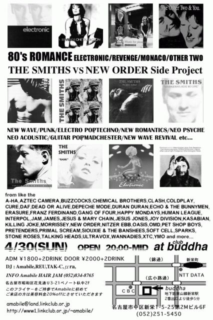 4/30 (日) 80's ROMANCE THE SMITHS vs NEW ORDER Side Project
