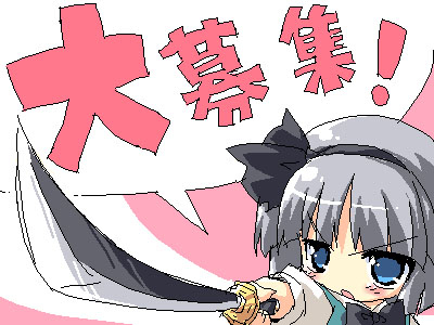 皆様初めまして、 サークル「Dr.VERMILION」のペテン師と申します。 突然イベントトピックを立ててしまったこと、お許しください。 東方も日々活気を増しているように感じる今日、 各所コミュニティでも色んな合同企画が飛び交っています。 そんな様子を見て私も大好きなキャラの「魂魄妖夢」の 企画がどこかで上がれば飛びつこうと考えておりました。 しかし待てど待てどそういう話は上がらなかったもので、 「だったら自分で立ち上げてしまえ」という考えが沸き、 企画を立ちあげることにしました。 カッコよくて可愛くて、