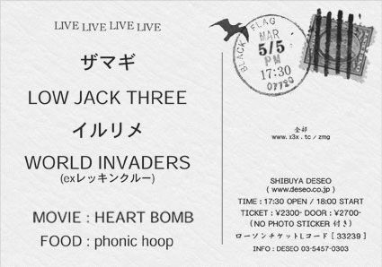 LIVE : ザマギ . LOW JACK 3 . イルリメ. WORLD INVADERS (exレッキンクルー)