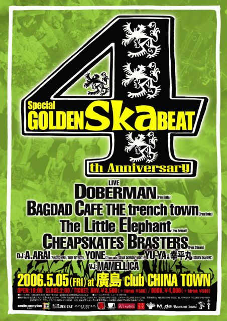GOLDEN SKA BEAT〜4th anniversary〜まで約1ヶ月をきりました。お陰様で前売りチケットはガンガン売れており、残り少なくなってきました〜!!!いや〜この調子でいけば当日券は出ないと思われます!!!みなさんチケットは買われましたか!?